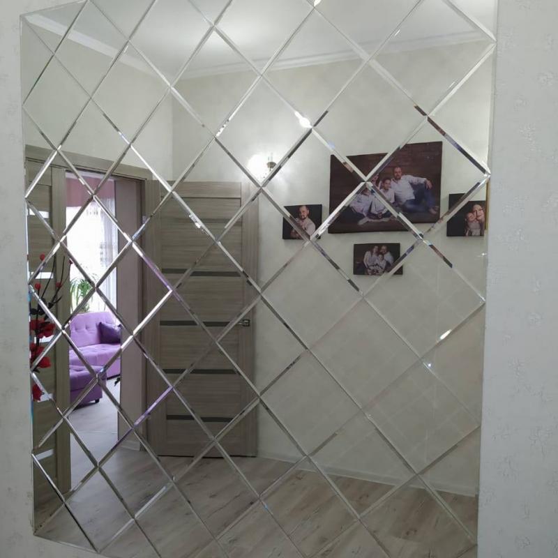 Использована зеркальная плитка "вытянутый ромб" с фацетом.